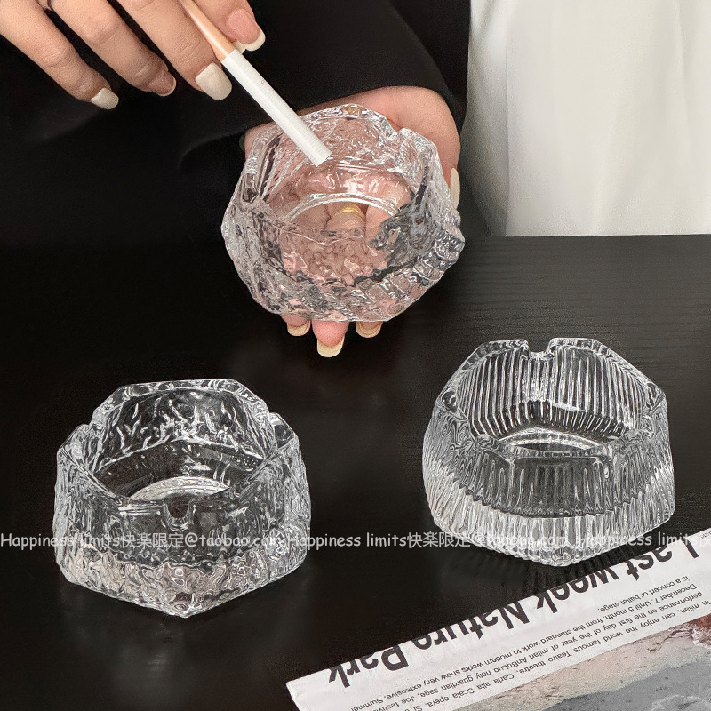新款水晶玻璃抖音網紅煙灰缸ins高顏值客廳茶幾辦公室酒店煙缸