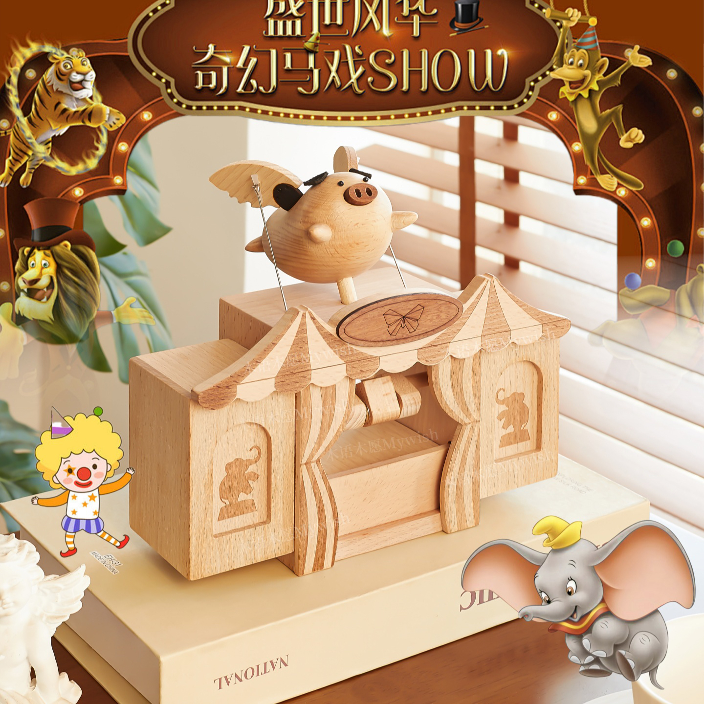 電動小飛豬創意擺件兒童節日生日禮物木質機械玩具手工原木簡約