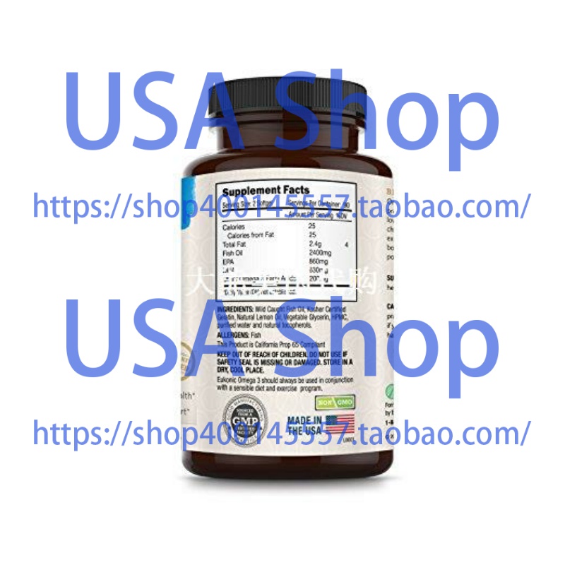新品Omega-3 Wild Caught Fish Oil 2400 mg, 180 Softgels