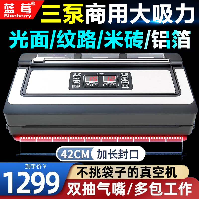 藍莓PW420全自動真空包裝機3泵商用干濕兩用小型大米袋雞鴨鵝42cm