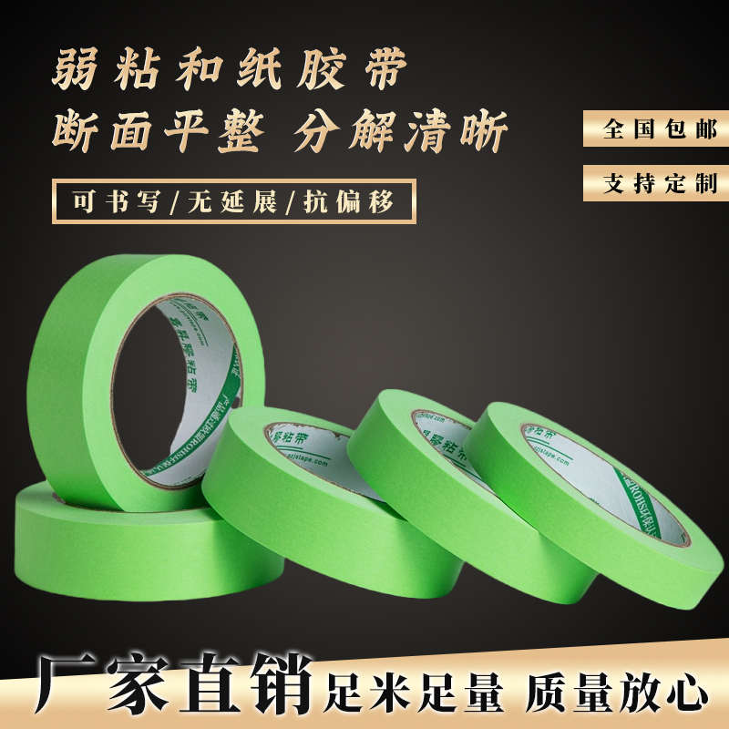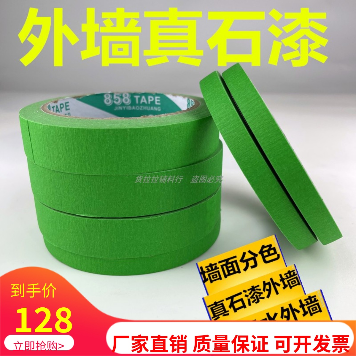 高粘外墻真石漆專用綠色美紋紙膠帶噴漆遮蔽美縫分色紙膠帶耐高溫