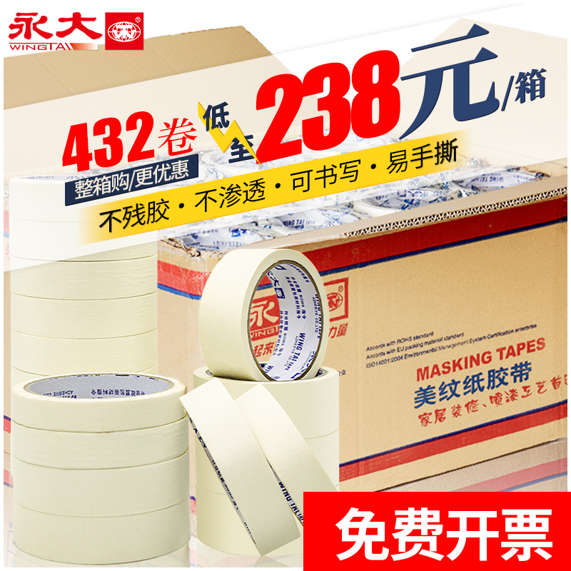 和紙膠帶美紋紙50米黃色7388瓷磚美縫高粘分色貼紙膠布整箱批發噴