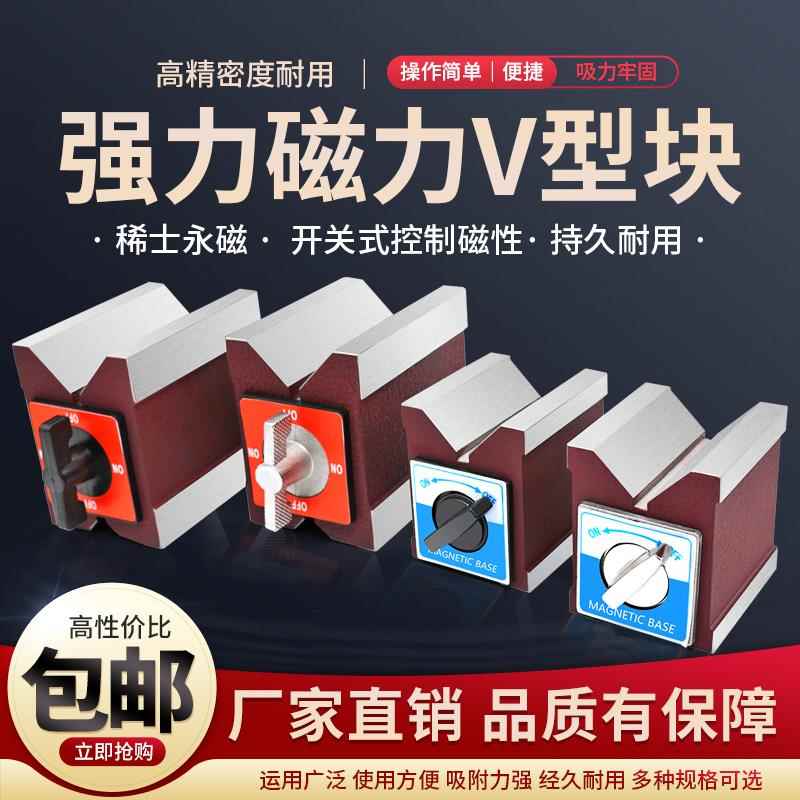 千航線切割磁力座開關式磁性表座固定底座強力支架磁鐵V型磁臺