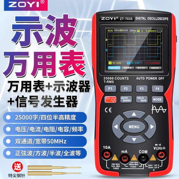 眾儀彩屏ZT-703s雙通道示波器50MHz高精度多功能三合一萬用表汽修