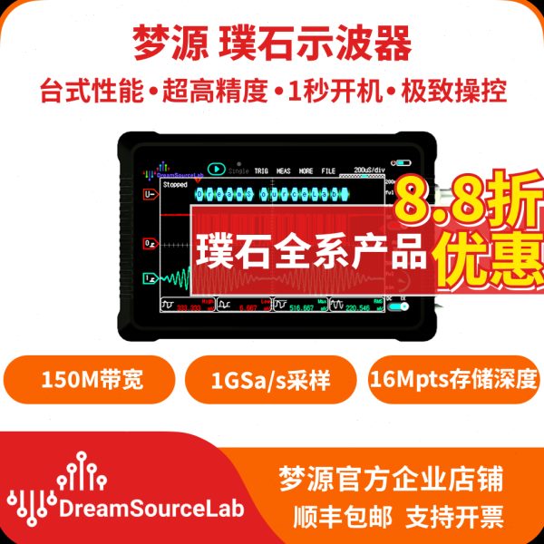 璞石超便攜觸屏示波器 手持mini雙通道 1G采樣率 超大存儲深度