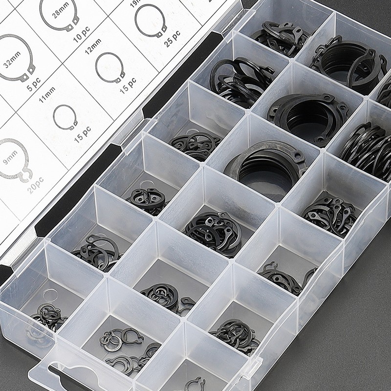 軸用孔用鋼絲卡簧套盒內外E型扁擋圈扣環K農機汽修工具緊固件熱賣