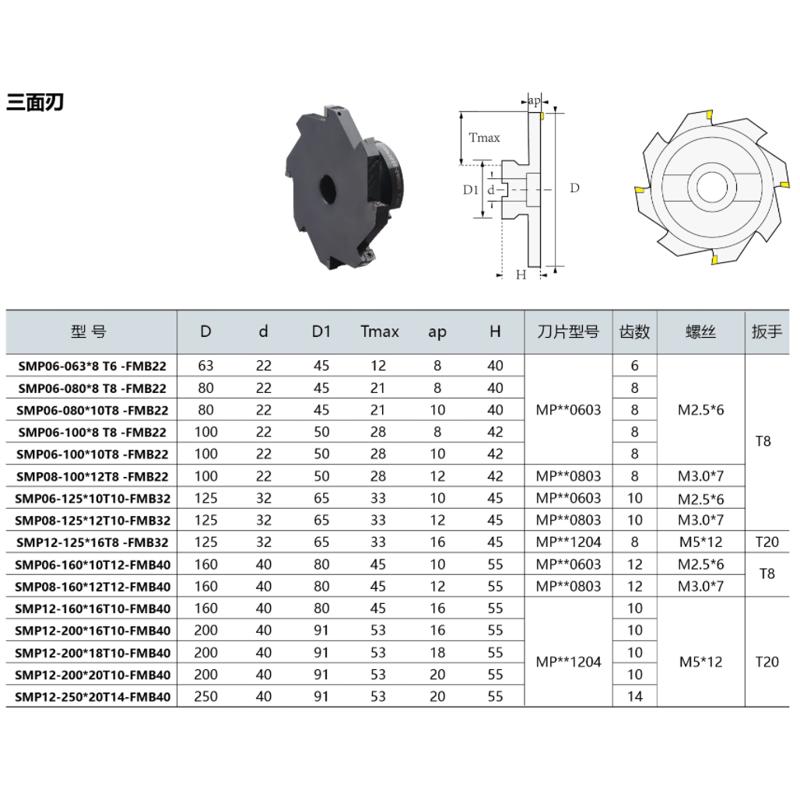 SMP三面刃銑刀盤片式數控三面刃T型開槽銑扁式鋸片刀盤MPHT06 08