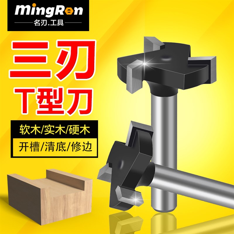 1/4柄6柄三刃T型刀槽口刀開槽刀木工銑刀拉槽銑刀T型榫刀木工銑刀
