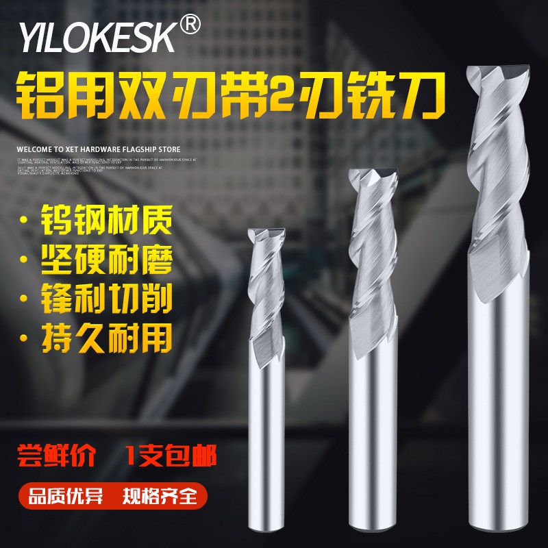 50度2刃鍵槽鋁用鎢鋼銑刀加長雙刃帶高光鋁合金專用立.銑刀平底刀