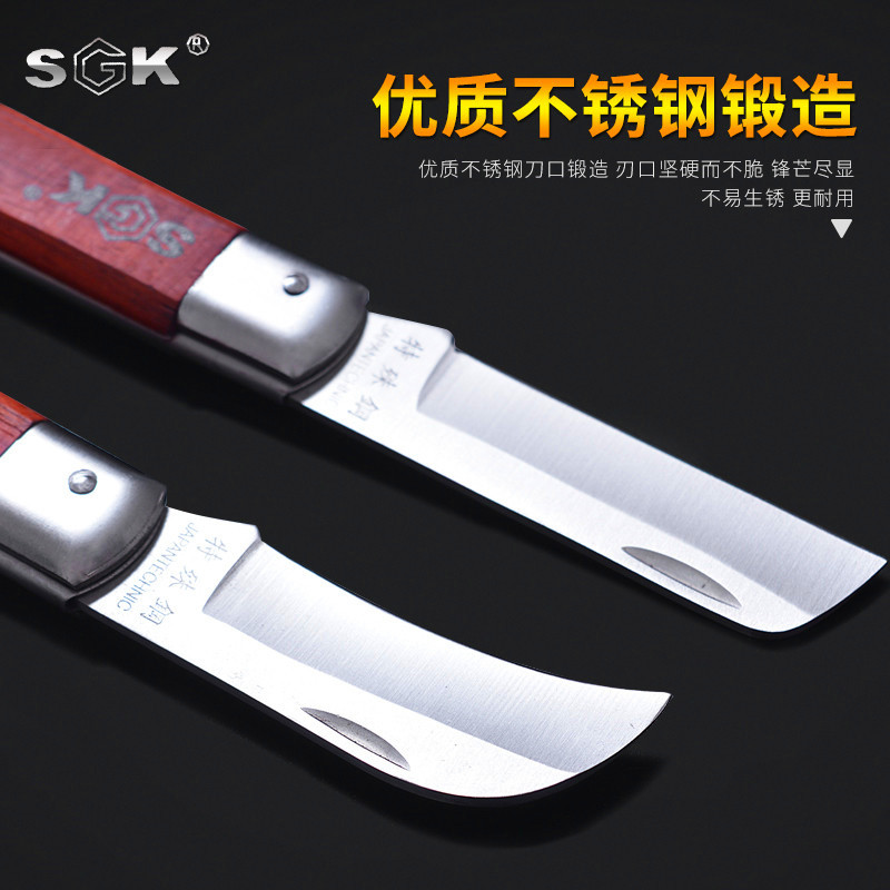 速發電工刀電纜剝皮刀直刃彎刃特種鋼木柄多功能折疊