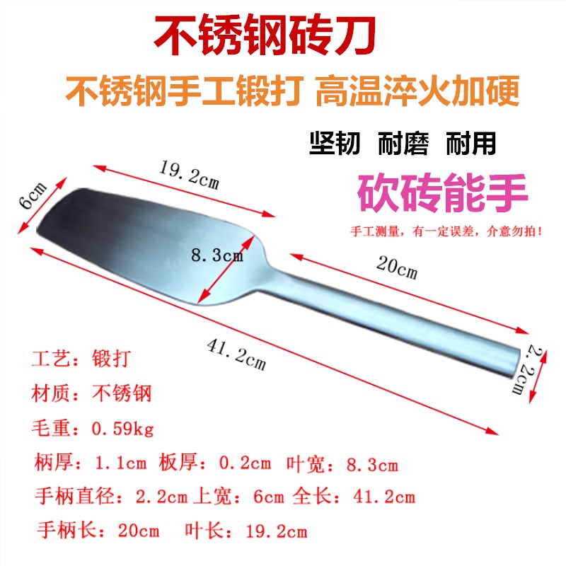 加厚不銹鋼磚刀瓦工工具建筑瓦刀雙面磚刀砌墻砌磚神器砍磚泥刀