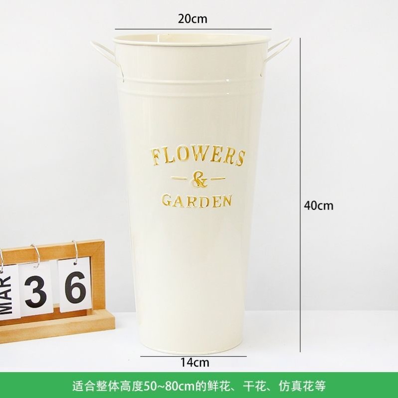 美式特大號深水醒花桶養花鐵藝容器干花落地桶花店插花專用桶鮮花