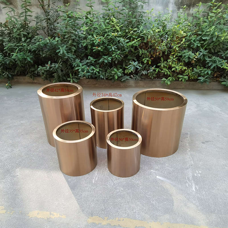 仿真綠植 不銹鋼圓筒 玫瑰金 酒店花器 植物套盆 女裝店盆栽 道