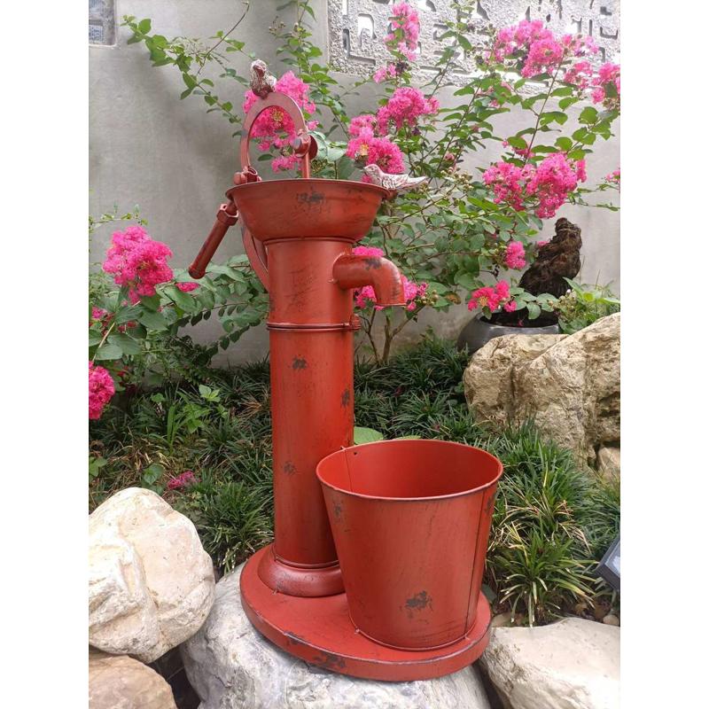 沐子哥的庭院鐵藝搖水泵田園復古做舊室外花園裝飾