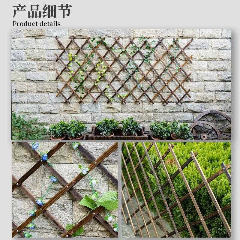 園藝護欄庭院裝飾伸縮圍欄爬藤花架拉網碳化柵欄網格花園木籬笆