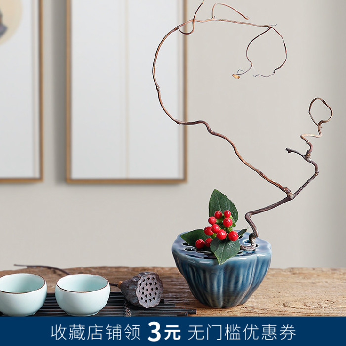 陶瓷蓮蓬花器禪意中式日式插花裝飾中國風茶席桌面小花盤擺件搭配