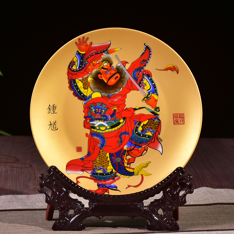 景德鎮創意家居客廳陶瓷裝飾盤子時尚桌面擺件工藝品人物鐘馗龍架