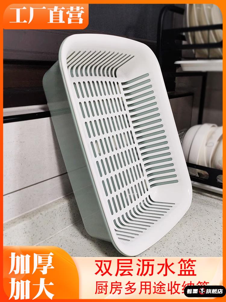 加厚雙層瀝水籃洗菜盆長方形洗菜籃子漏盆塑料廚房碗碟盆洗水果盤