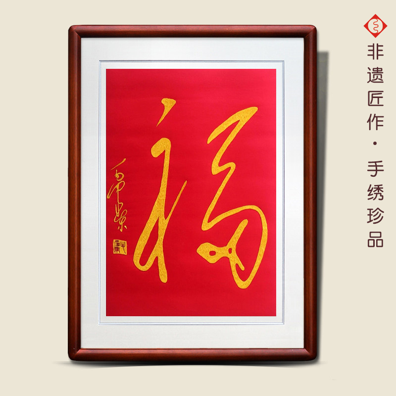 有福湘繡中式毛體書法毛主席康熙福字客廳書房裝飾掛畫送領導禮