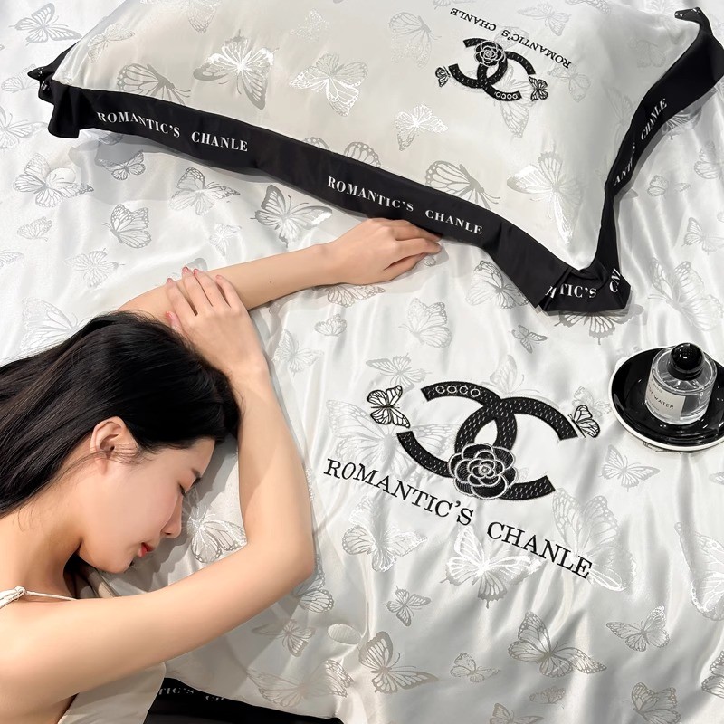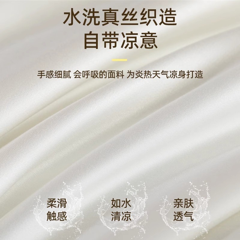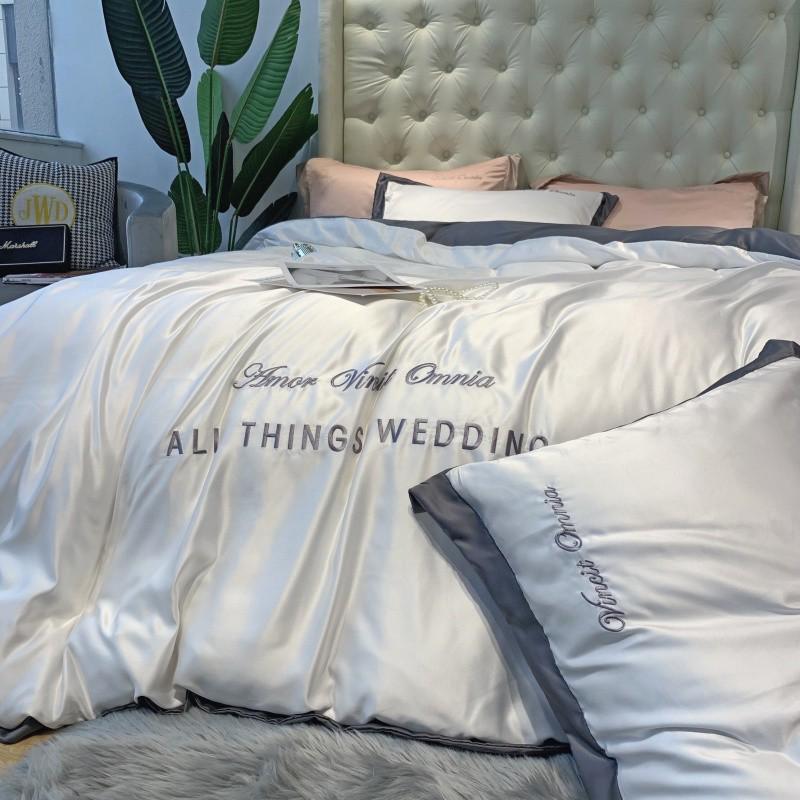 A類水洗真絲夏涼被四件套輕奢高級感刺繡床上用品冰絲滑裸睡床單4