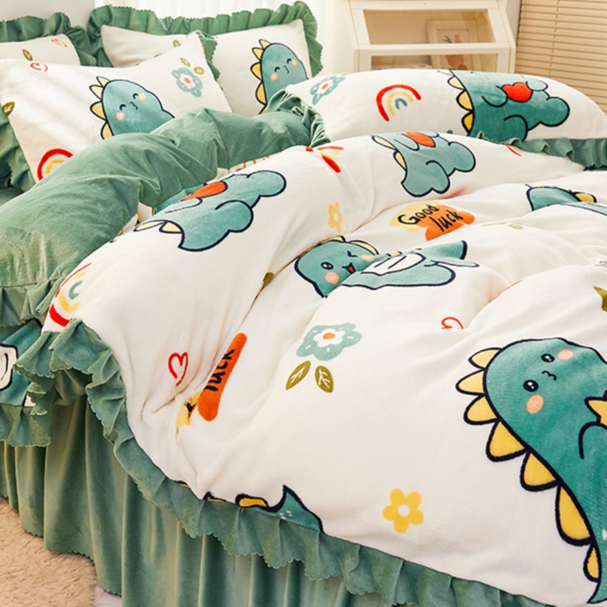 寶寶牛奶絨床裙四件套加厚雙面絨珊瑚絨冬季法蘭絨床單被套三件套