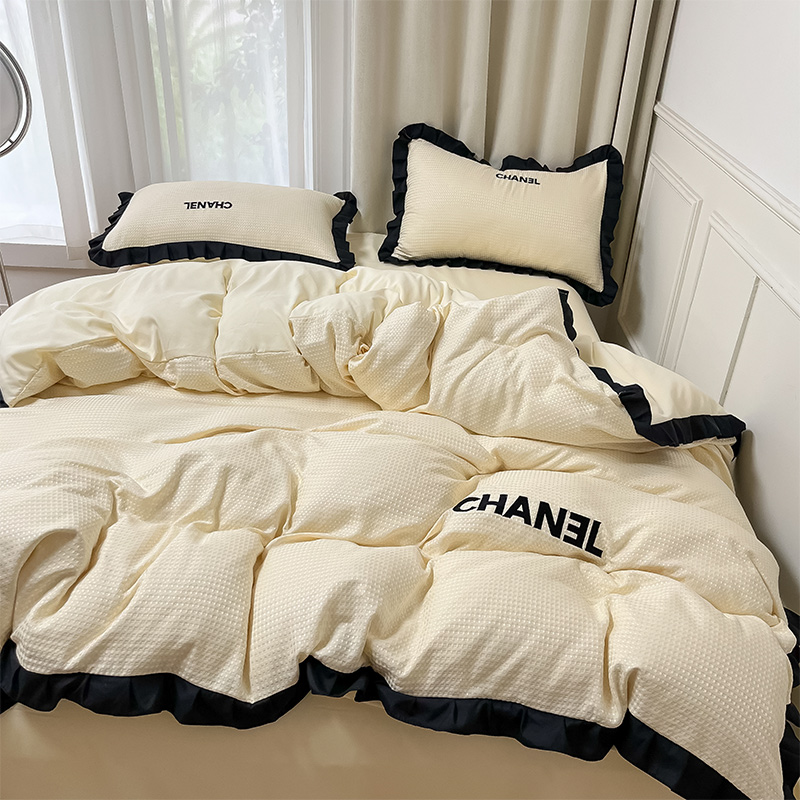 小紅書推薦簡約全棉花邊四件套純棉少女心華夫格被罩歐.式高級牀