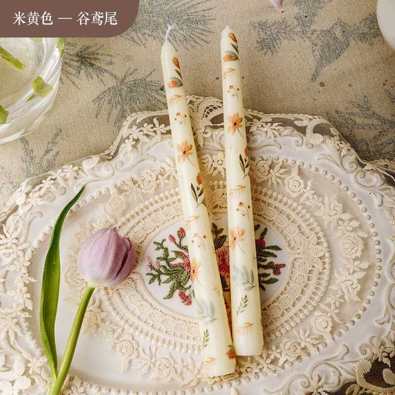 法式25cm印花長桿蠟燭歐式浪漫燭光晚餐婚慶節日結婚家用無煙蠟燭