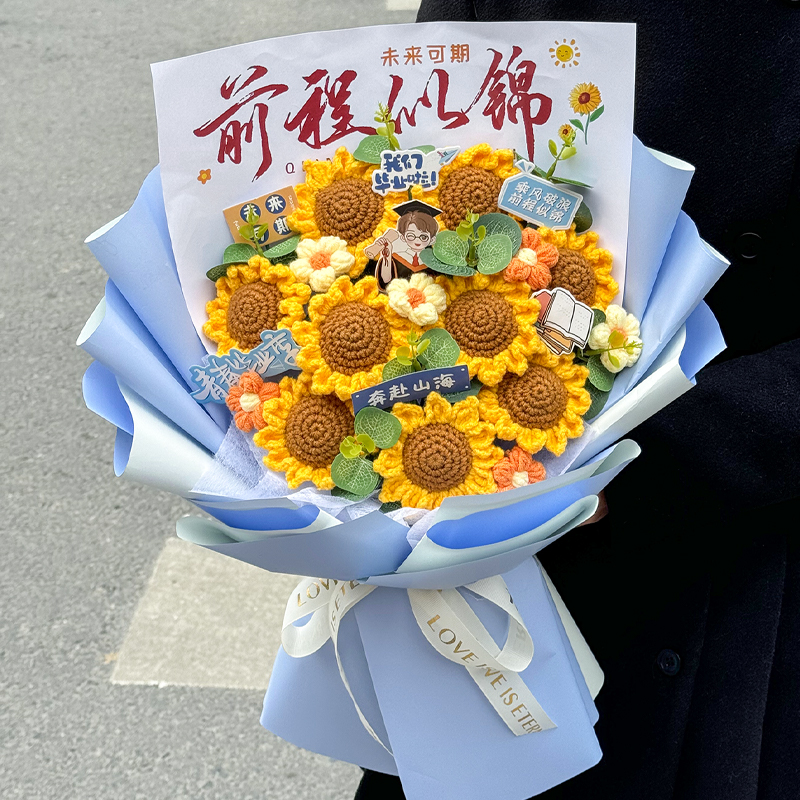 手工鉤織向日葵編織郁金香毛線花束成品畢業中高考儀式感禮物女生