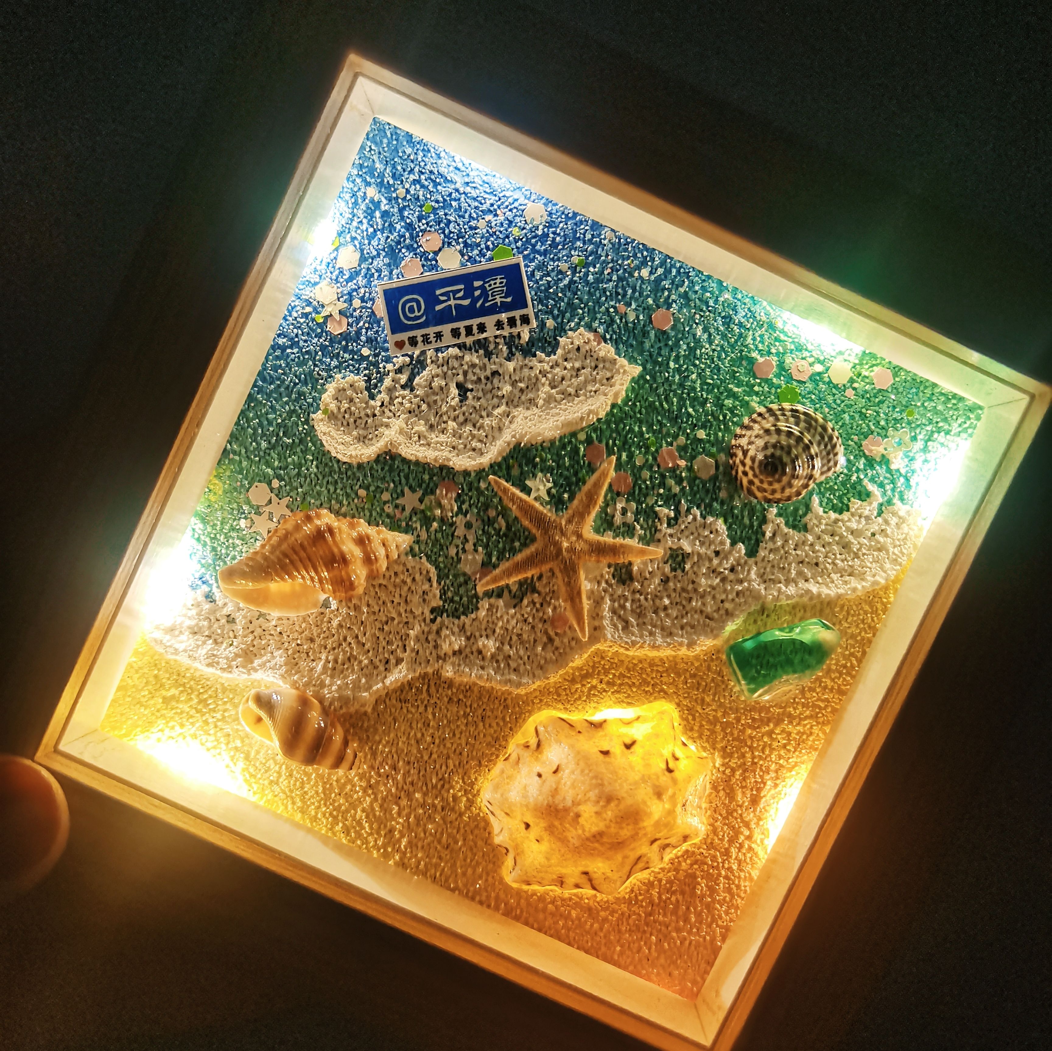 秦皇島威海旅游紀念品伴手禮 藍眼淚夜光款 夏日沙灘貝殼相框