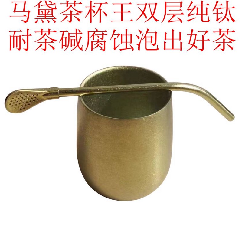 馬黛茶杯王 雙層純鈦高溫氧化自然金O色 含純鈦過濾吸管