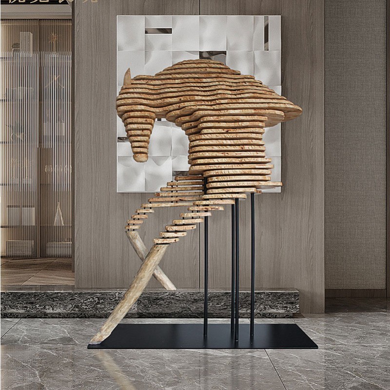 雕塑廠售樓處酒店大堂落地馬頭裝飾雕塑 新中式抽象木質雕塑擺件
