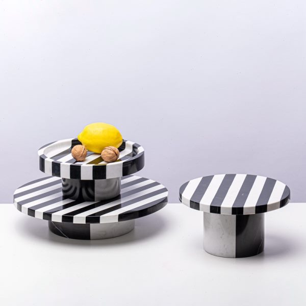 現北歐黑白條紋大理石托盤擺件軟裝樣客廳茶幾電視柜收納裝飾品