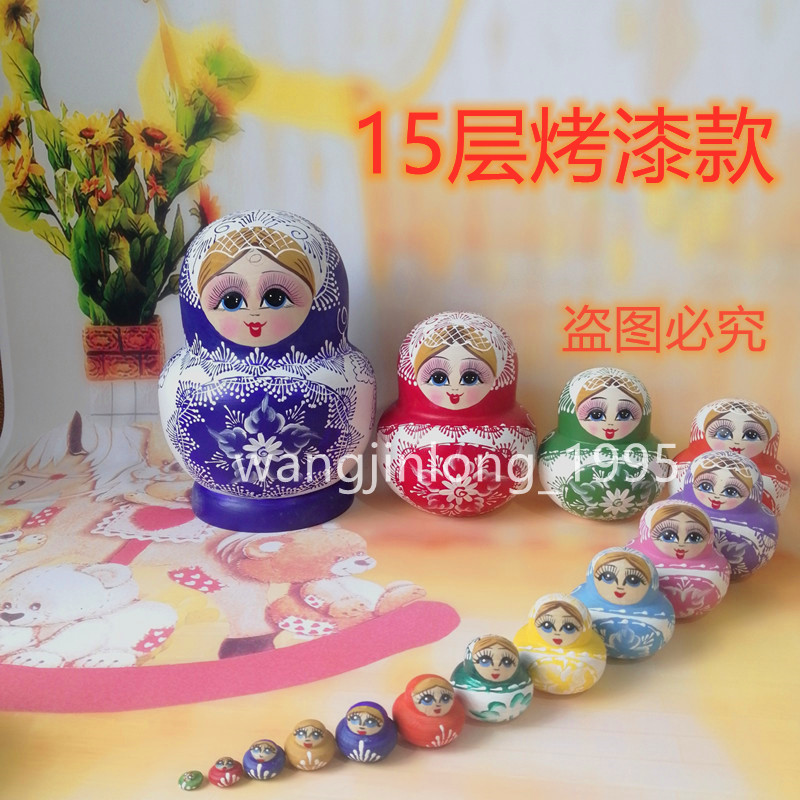 正品烤漆俄羅斯套娃大肚15層木制手工創意玩偶禮品兒童玩具水晶款