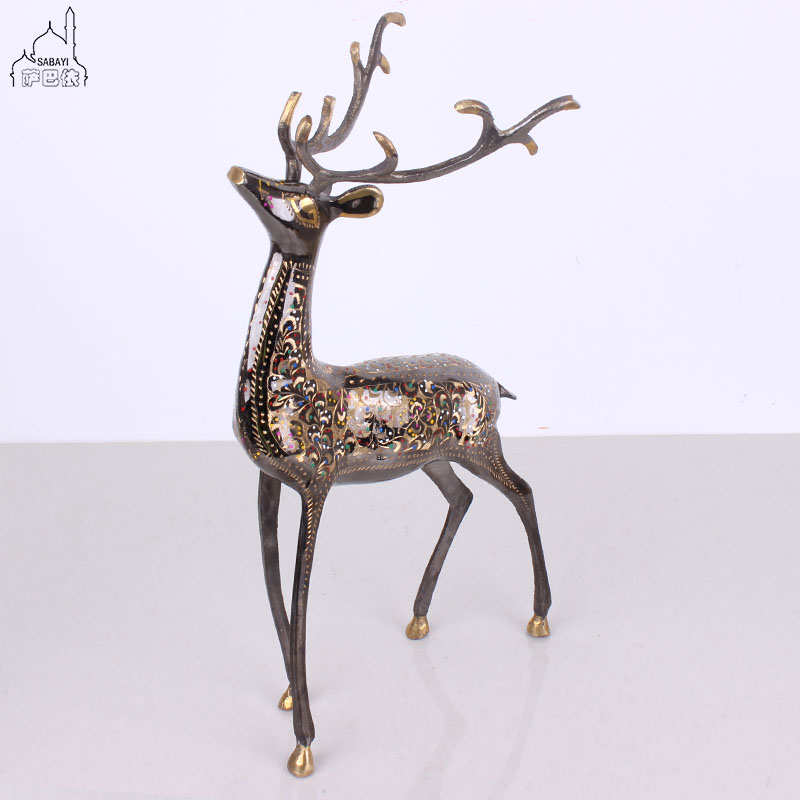 巴基斯坦銅器動物對鹿手工工藝黑漆彩一對鹿家居裝飾擺件結婚禮品