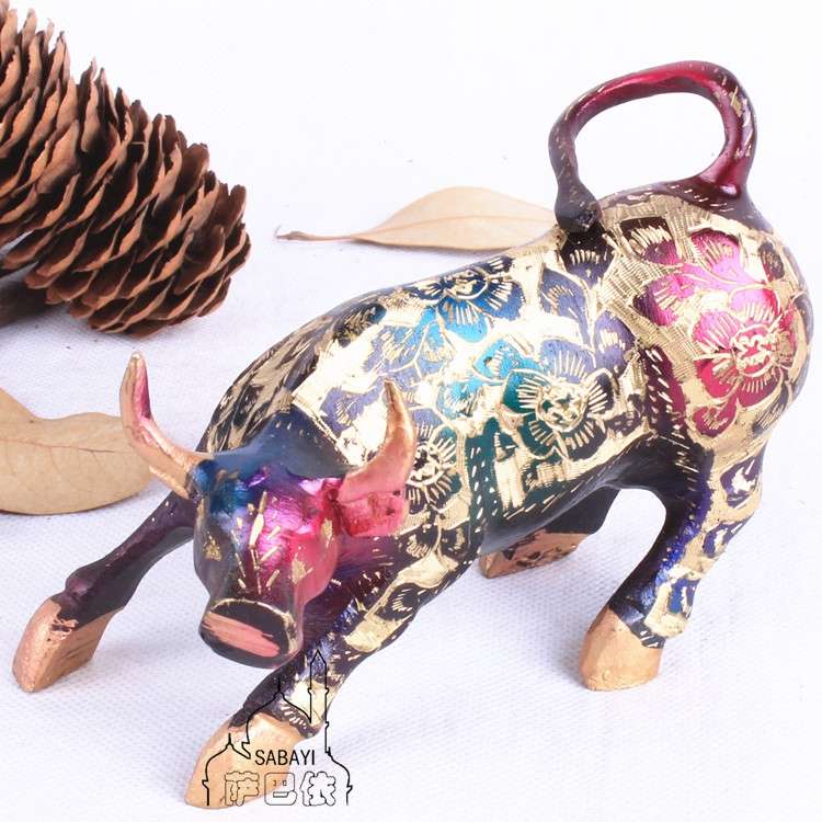巴基斯坦 手工雕刻彩花銅牛 旺財轉運動物特色藝術工藝品禮品