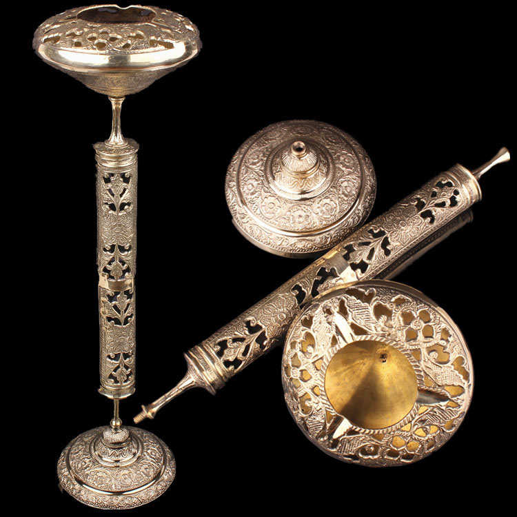 巴基斯坦銅器手工藝品仿古熏香爐黃銅雕煙灰缸落地煙灰缸家居用品
