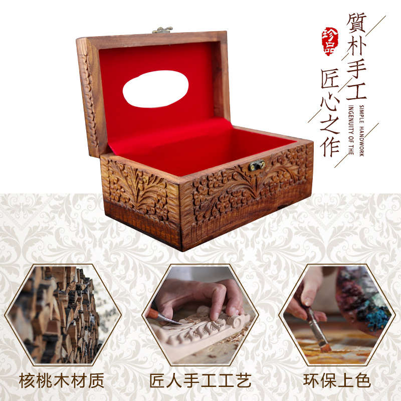 巴基斯坦核桃木仿古木質手工雕花紙巾盒抽紙盒復古實木餐巾紙抽盒