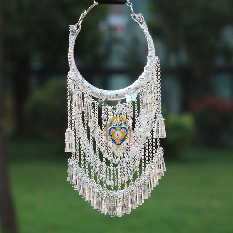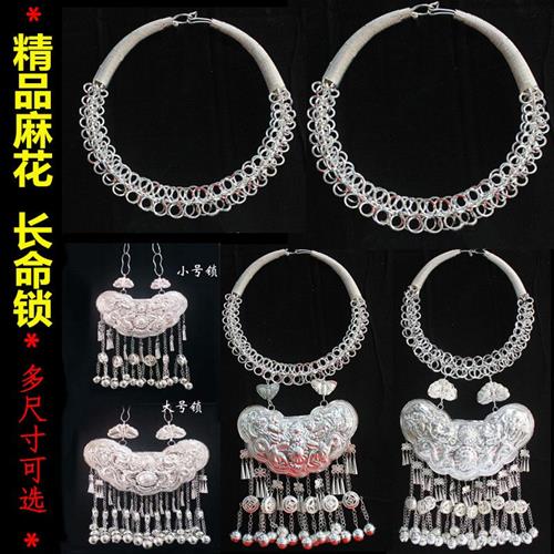 速發貴州苗族銀飾項圈苗銀苗族舞蹈服裝配飾大中小氣泡長命鎖盛裝