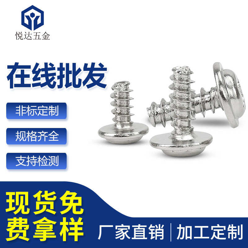 鐵十字圓頭自攻平尾帶介子螺絲PWB1.5*3/4/5/6*4介子盤頭帶帽自攻