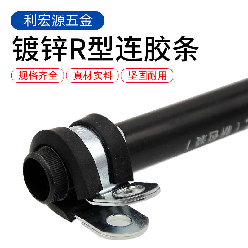 鐵鍍鋅R型連膠條喉箍固定管夾電線電纜線卡夾子卡箍橡膠減震抱箍*