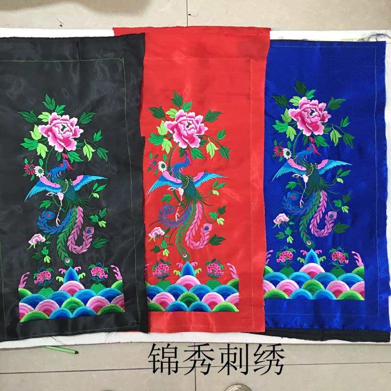 祥云鳳戲牡丹民族風繡花布料貴州苗繡馬面裙刺繡