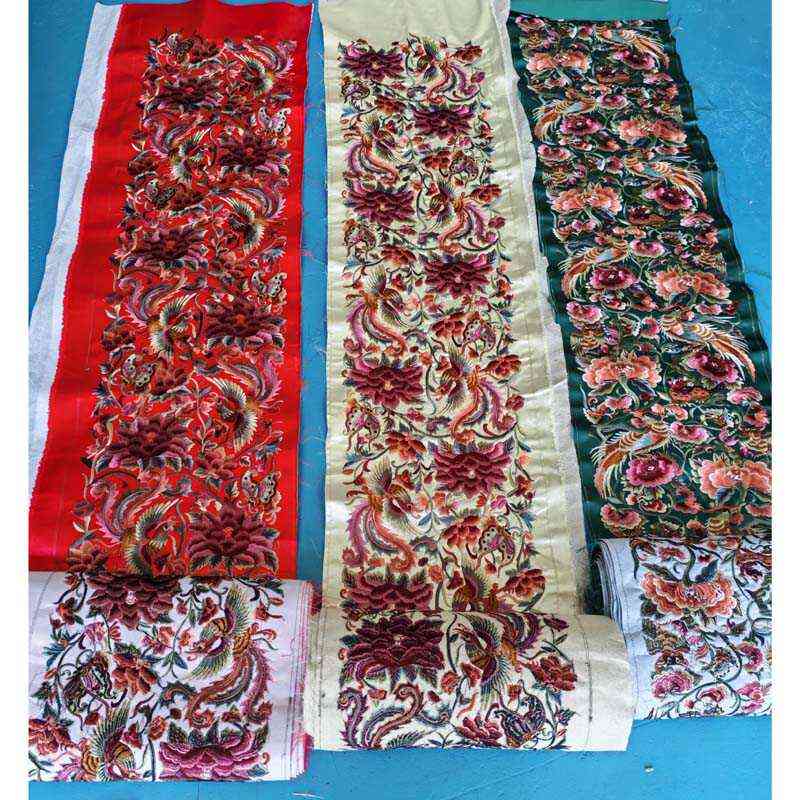 中國風民族機繡特色繡片 苗族工藝品刺繡桌旗床尾巾花邊刺繡