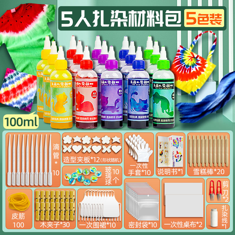 5人套餐5色扎染diy工具材料包套餐冷水免煮染料幼兒美術顏料全套