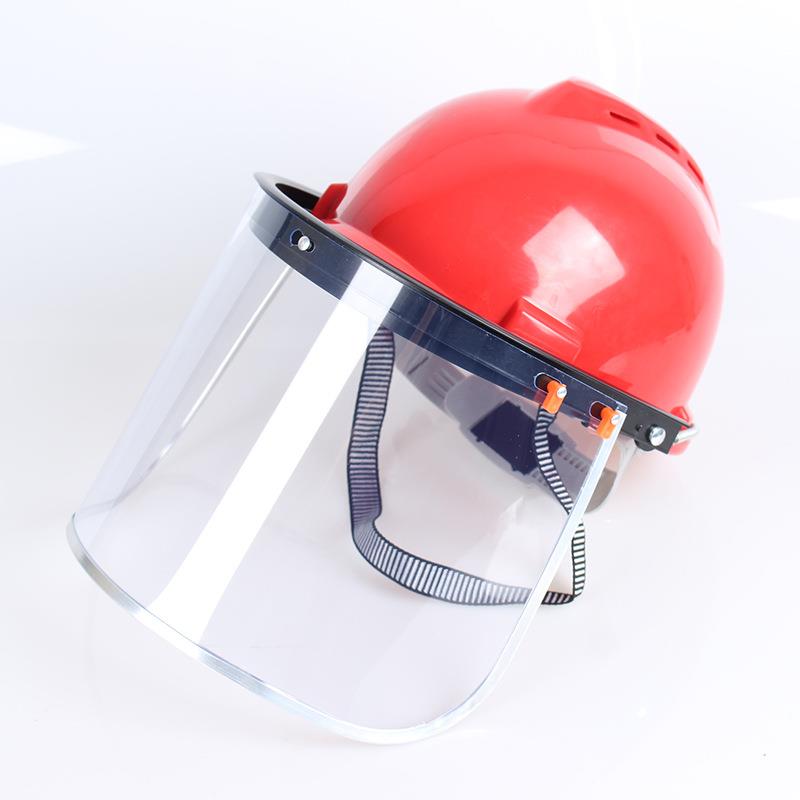 安全帽帶面罩全臉防護透明PVC鋁包邊燒焊防飛濺防沖擊打磨面屏
