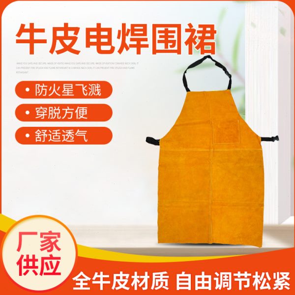 耐磨黃色牛皮電焊圍裙 牛皮焊工防護服廠家