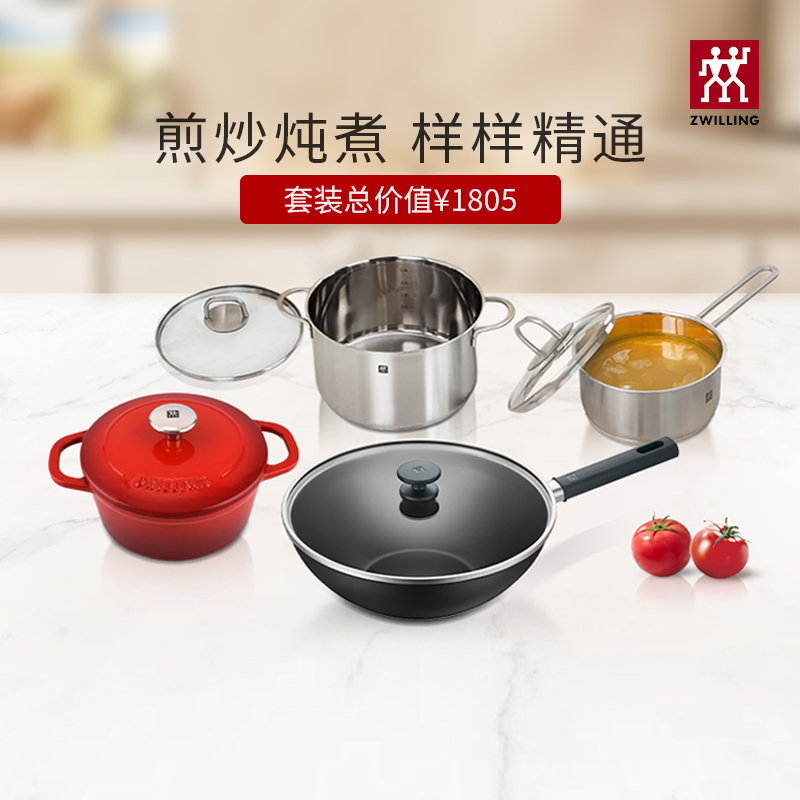 德國雙立人Now Plus 套裝鍋具全家福不粘鍋琺瑯鑄鐵鍋家用炒菜鍋