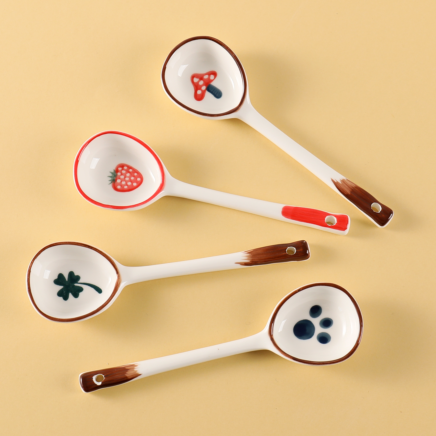 五里鋪嚴選日式長柄陶瓷勺子手繪釉下彩網紅湯勺卡通可愛甜品勺