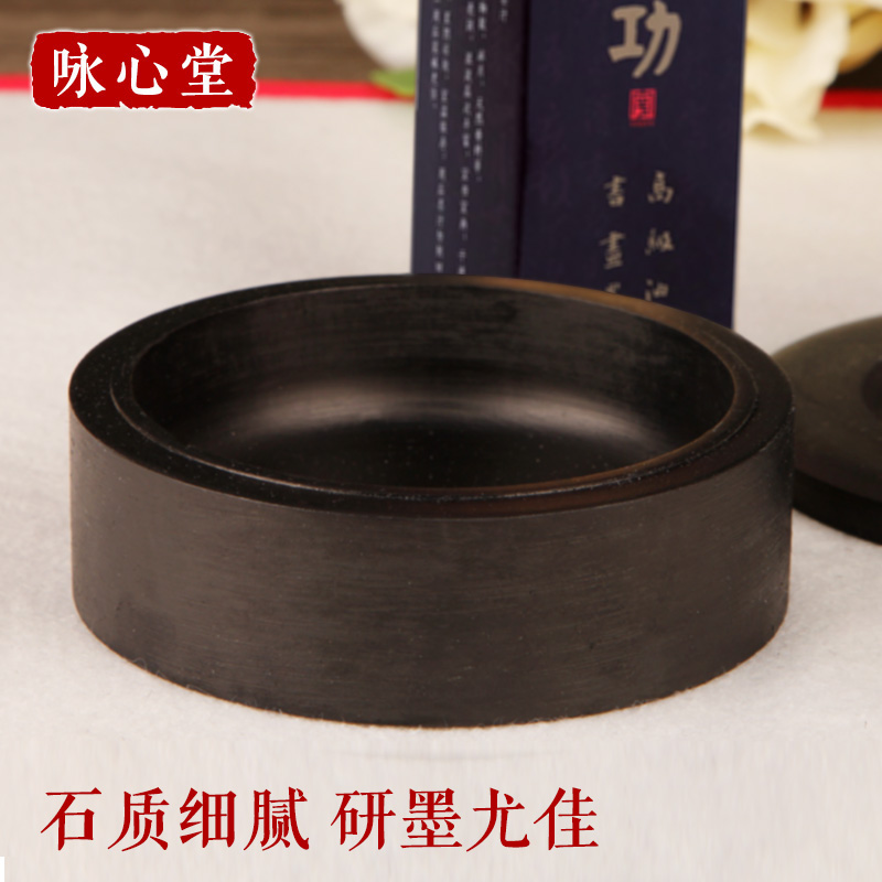 羅紋硯歙硯天然原石小墨盤4墨海硯臺E5寸學生實用便攜帶蓋石硯磚