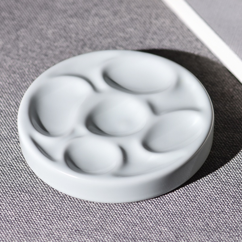 高檔文房四寶國畫墨汁水彩調色盤陶瓷可愛圓形顏料水碟.多功能u.