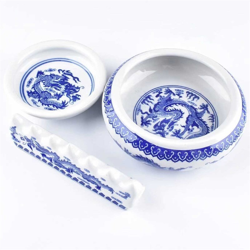 青花瓷e筆洗筆筒筆擱墨v碟三四件組合陶瓷套裝白云毛筆文房四